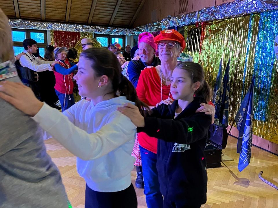 Zum krönenden Abschluss ließen es sich die Mitglieder der Faschingsgilde nicht nehmen, gemeinsam mit den Seniorinnen und Senioren eine fröhliche Polonaise durch den Pfarrsaal zu starten, ein farbenfrohes Bild und ein stimmungsvoller Ausklang eines rundum gelungenen Faschingsnachmittags.