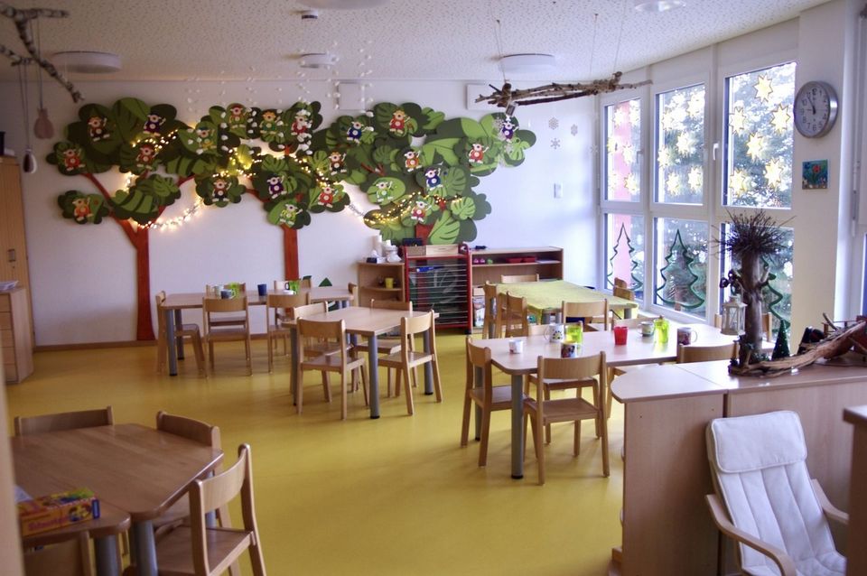 Krippe = 3 Gruppen (Bärchen, Spatzen, Mäuse) mit je 12 Kindern