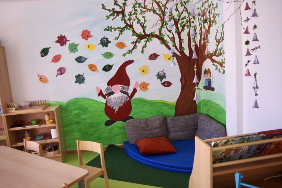 Kindergarten = 3 Gruppen (Waldgeister, Drachen, Mooswichtel) mit je 25 Kindern
